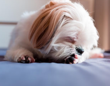 개가 자신의 발을 핥거나 물고 있을 때는 위화감을 느낄 수 있거나 정신적인 문제를 가지고 있을 가능성이 높다. 그러니 평소에 애견의 모습을 잘 관찰해 주시기 바란다.