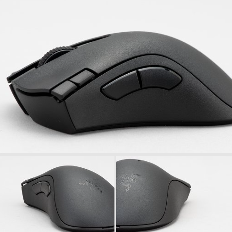 DeathAder V2 X HyperSpeed(왼쪽)와 4 Gamer의 비교용 레퍼런스인 「PRO X SUPERLIGHT Wireless Gaming Mouse」(오른쪽)을 나란히 했다.보는 바와 같이, 좌우 비대칭 보디가 된다.왼쪽 메인 버튼 옆에 있는 두 개의 사이드 버튼은 아주 크다