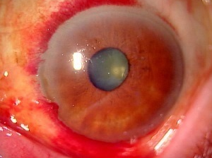 외상이란 이름 그대로 안구 타박상이나 골절 등에 따른 직접적인 혈관 손상입니다. 그중에서도 이물질이 박힌 경우에는 결막하 출혈 아래에 천공 창(천공 공공:눈에 구멍이 뚫린 상태)이나 이물질이 숨어 있을 수 있습니다.