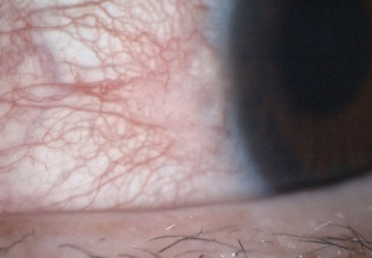 반면 ②의 충혈이란 혈관의 혈액량이 증가한 상태이므로 가느다란 붉은 혈관의 주행을 확인할 수 있는 상태입니다. 잠이 부족할 때나 컴퓨터를 과용했을 때 나타나는 일상적으로 흔히 볼 수 있는 증상입니다.