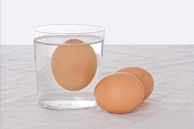 신선도가 높은 계란은 옆으로 굴러 가라앉지만, 신선도가 내려감에 따라 조금씩 둥근 쪽의 끝이 떠오르게 되어, 그러다가 세로 방향으로 선 상태로 가라앉게 됩니다. 이는 시간이 지남에 따라 달걀 속의 수분이 증발하면서 비중이 가벼워지는 데 따른 것. 선 상태에서 가라앉은 계란은 생식하지 말고 가열해서 먹도록 하십시오. 완전히 물에 떠 버린 계란은, 만약을 위해 먹는 것을 삼가는 것이 좋습니다.