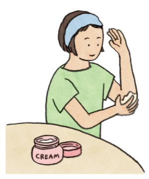 로션으로 수분을 공급한 후 로션, 크림 등으로 촉촉함을 유지합니다. 특히 목욕 후에는 피지가 씻겨나가 건조해지기 쉬우므로 목욕 후 10분 이내에 보습을. 주름에 따라 듬뿍 보습제를 바르는 것이 요령입니다. 충분한 보습에는 열을 식히는 효과도 있어 다음 항의 '냉각'에도 효과적입니다.