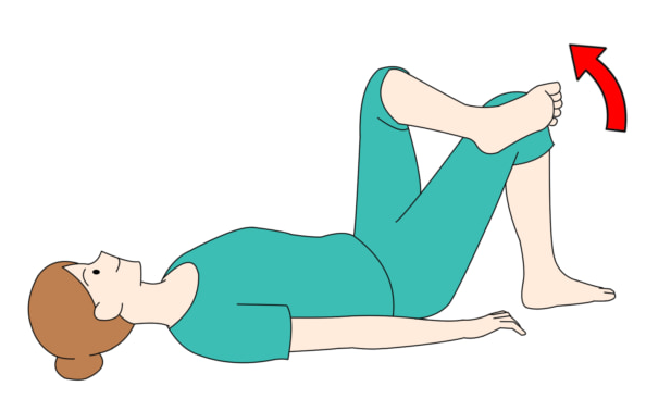 - 등을 대고 누워 오른쪽 다리를 구부리다