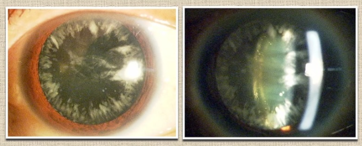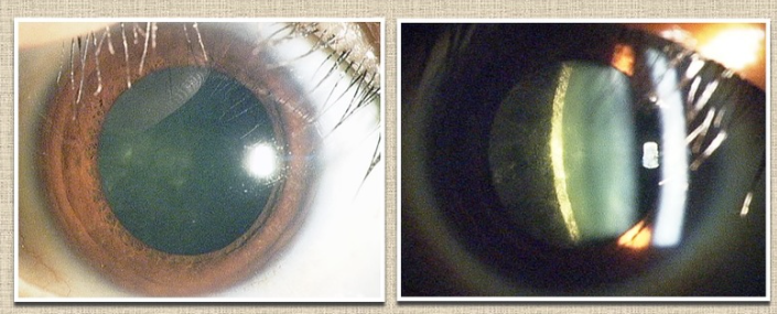 10~20대 조기 백내장의 가장 흔한 원인 질환입니다. 수정체 주위의 피질이 녹기 쉽기 때문에, 진행이 빠르고, 몇 개월 만에 수정체가 새하얗게 탁해져(백색 성숙 백내장), 손가락의 수도 식별할 수 없는 상태가 될 수 있습니다. 20대에 수술이 필요한 경우도 자주 있습니다.
