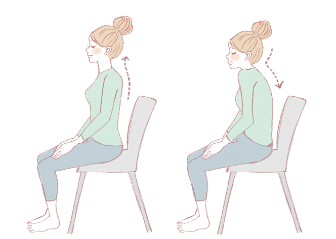 구부정한 자세의 자세는 위에 압력이 걸립니다.