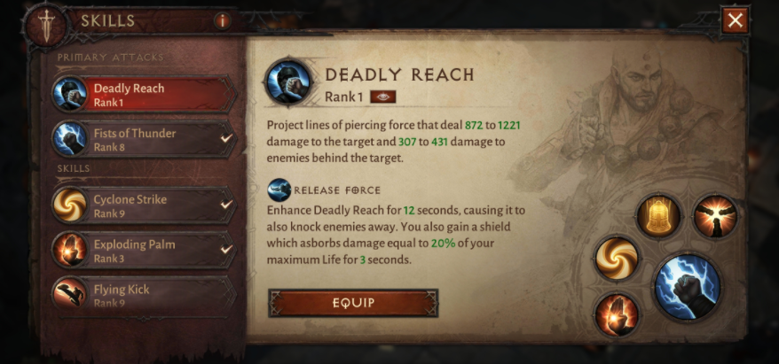 스킬에는 단계가 설정되어 있어, 캐릭터의 수준에 따라서 등급이 자동적으로 올라가는 구조다. 단계 높아지면 위력 등이 올라가는 것이지만, "디아블로 III"룬처럼 선뜻 성질 자체를 바꿀 수는 없다.