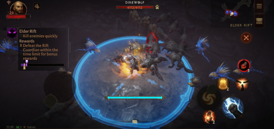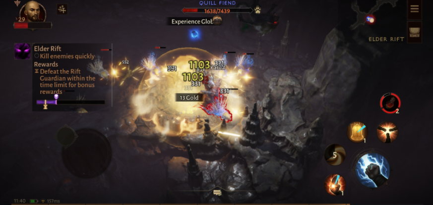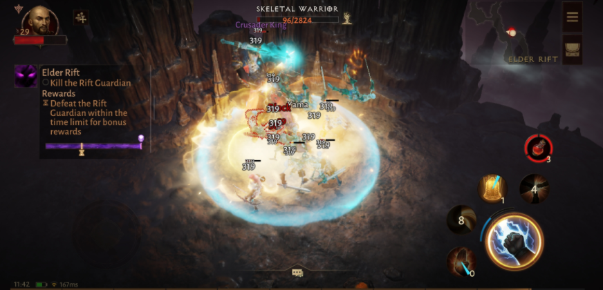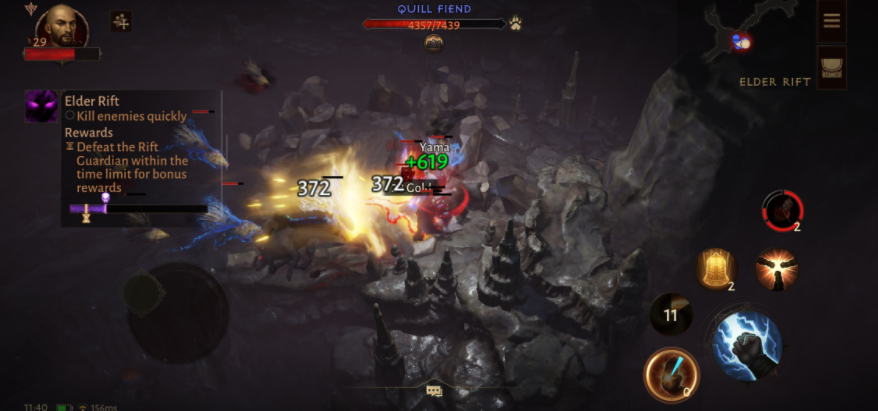 그동안의 디아블로 시리즈와 비교하면 스킬 발동까지 한 간 있는데, 그 대신 일부 스킬에는 터치하고 있다고 위력이 오르거나 범위가 넓어지거나 하는 액션성이 가해지고 있으므로, 전투 속도가 나쁘다는 느낌은 전혀 없었다.
