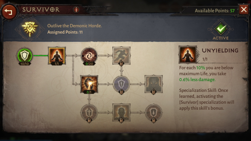 최대 레벨에 도달하면 개방되는 「파라곤」에도 손이 더 해지고 있으며, '디아블로 II'스킬 트리처럼 갈라져 여러 루트에서 강력한 어빌리티 등을 습득해 나가는 형태로 되어있다.