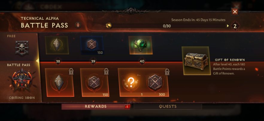 임모털에는, 게임의 진행도에 따라서 보수를 받는다 "CODEX", 조건 작성으로 진척 포인트를 받는다 "ACTIVITIES", 진척 포인트의 누적에 따른 보수를 받는다 "Battle Pass", 미지의 몬스터를 기록하는 "INDEX"식으로, 다양한 실적이 존재한다.