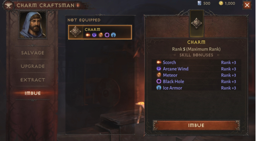 " 디아블로 II"에서는, 목록에 넣어 두는 것만으로 효과를 발휘하던 "참"이지만, 임모털에서는 기술의 등급을 향상하는 아이템으로 등장한다. 참에 의해서 대상이 되는 스킬이나 상승치가 다르므로, 전설처럼 참을 엄선하는 것도 즐거움의 1개가 될 것 같다.