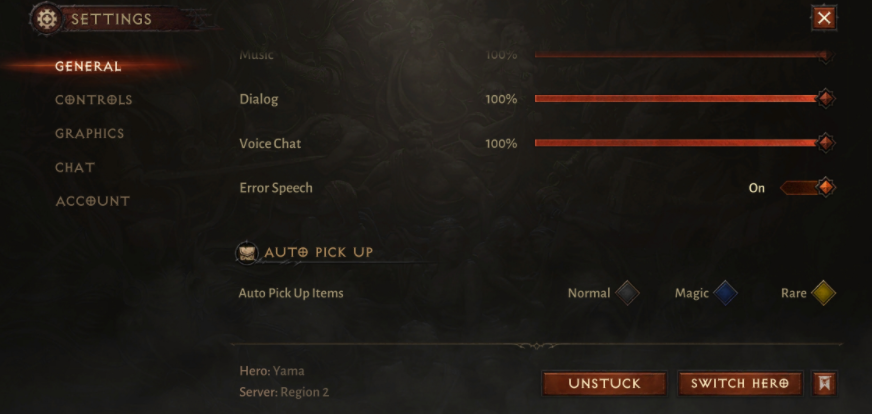 조작성에 대해서는 최적화뿐 아니라 간략화도 도모되고 있다. 임모털에서는 옵션에 아이템의 자동 취득 설정이 있고 커먼(흰색), 매직(파랑), 레아(황)의 3개는 설정하면 접근만으로 자동으로 집어서 주렴. "Grim Dawn"처럼 세세하게 설정할 수 있는 필터 기능은 없지만, 대량의 드롭 아이템을 일일이 터치하지 않아도 되는 건 고맙다.