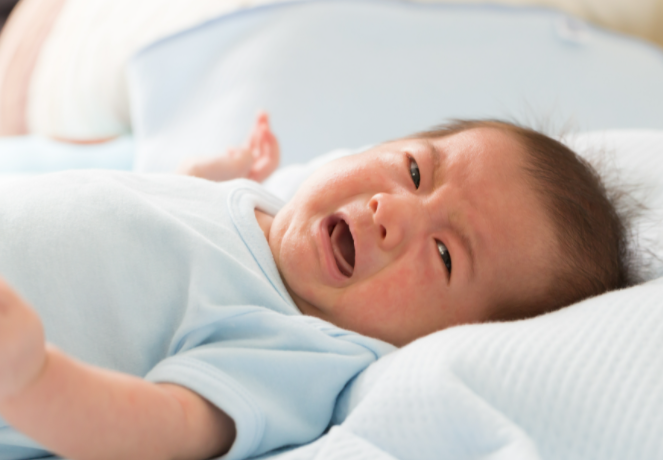 "벌렁 드러눕기"는 피합니다. 구토하고 있을 때 위를 향해 눕히면 구토물로 질식하는 경우가 있습니다. 반드시 옆으로 눕혀 아기의 상태나 안색을 관찰합시다.