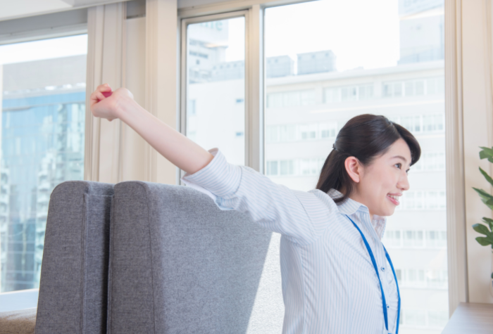 사무직이나 컴퓨터를 사용하는 작업의 경우는 적당히 휴식을 넣고 팔을 돌려 스트레칭을 합시다.