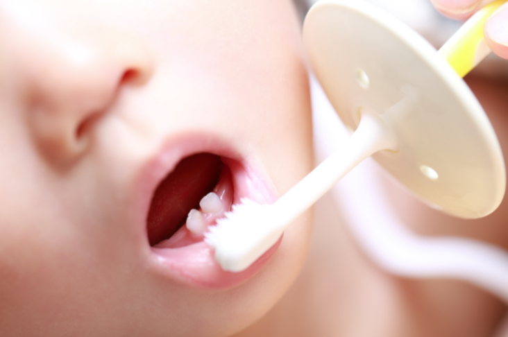 막 나온 유치는 매우 부드럽고 충치에 걸리기 쉽기 때문에 불소를 사용하여 치아를 강화하는 것을 추천합니다.