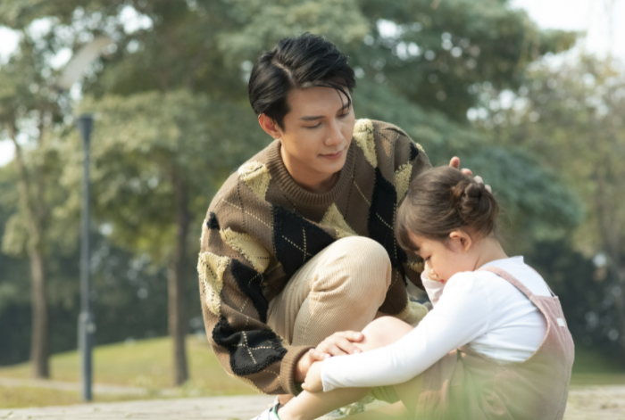 아이가 넘어져서 이마를 다쳤어요! 뒤통수를 강타했습니다!