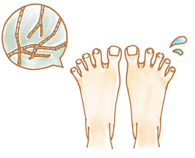 신발과 양말을 장시간 신거나 다리가 덥고 고온 다습 상태가 되면 백선균이 성장 쉽고, 무좀에 걸릴 수 있습니다.