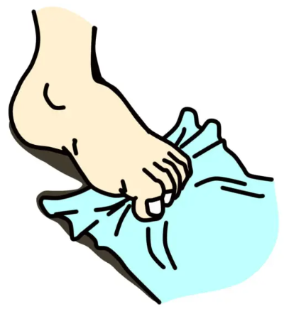 - 발꿈치는 고정시키고 발가락으로 수건을 끌어당기세요