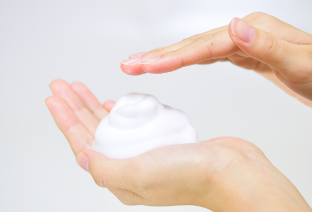 거품을 잘 낸 비누로 피부를 감싸듯 씻는다.