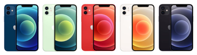 iPhone 12는 블루, 그린, PRODUCT (RED), 화이트, 블랙의 5 색 전개. iPhone 11에서 전개되고 있던 퍼플과 옐로우가 없어 블루가 참가하고있다. 질감은 스테인레스 솔리드 느낌이다.