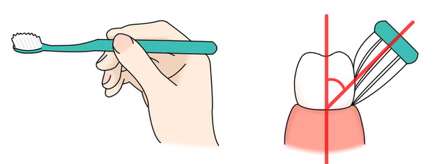 - 칫솔의 끝을 치아와 잇몸의 경계에 45도 각도로 대고 세밀하게 진동시키는 감각으로 칫솔질