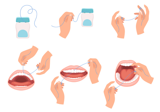 - 치실이 끊어지면 새로운 것을 사용합시다.