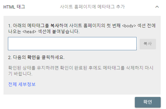 티스토리 기준 HTML 태그를 클릭하여 메타테크를 복사하여 티스토리 블로그 설정 -> 스킨편집 -> HTML 편집 -> 첫 번째 <body> 섹션 전에 나오는 <head> 섹션에 붙여넣습니다