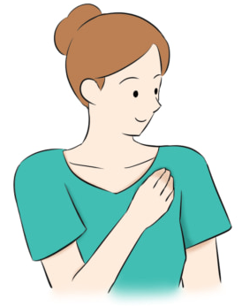 어깨 전부터 가슴에 걸쳐 뻗어있는 감각이 있으면 올바른 자세입니다.