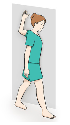 - 벽에 한 손과 팔꿈치를 밀착한다