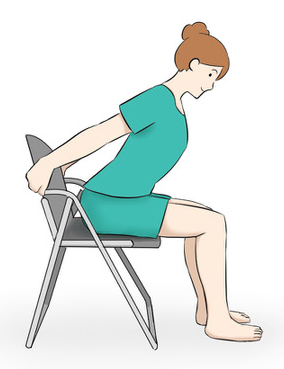 - 등받이 위에 손바닥을 놓고 가슴 근육을 스트레칭