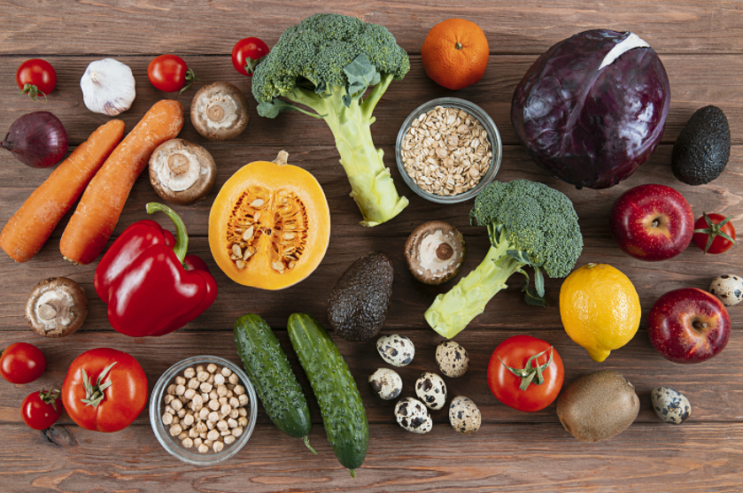 녹황색 채소나 해조류 등 비타민 미네랄을 포함한 식품.