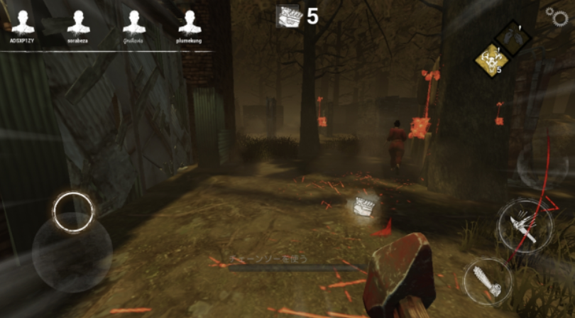 서바이버로 게임에 익숙해지면, 이번에는 킬러에도 도전해 보자. 킬러가 해야 할 일은 「서바이버를 잡아, 맵 각처에 있는 훅에 매단다」 「발전기를 부수어 수리가 완료하는 것을 막는다」의 두 가지다.