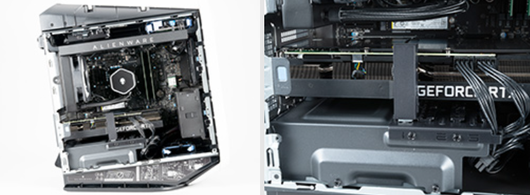 덧붙여 메인보드의 위쪽에는 LED를 짜넣은 「ALIENWARE」의 로고가 있어, GeForce RTX 3060 이상의 그래픽 카드를 선택했을 경우는, 카드상의 「GeForce RTX」 로고도 빛나는 등, 내부의 일루미네이션을 매혹하는 것에의 강한 고집이 느껴진다.