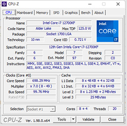 우선 CPU에는, 고성능 CPU코어(P-Core)을 8개의 성 전력 CPU 코어(E-Core)를 4가지 대비, 20 스레드에 대응하는 "Core i7-12700KF"(이하, i7-12700KF)를 채용하고 있다. P-Core의 정격 동작 클럭은 3.6 GHz이지만, Turbo Boost Technology적용 시 최대 동작 클럭은 5 GHz와, 게임 용도로 높은 성능이 기대된다.