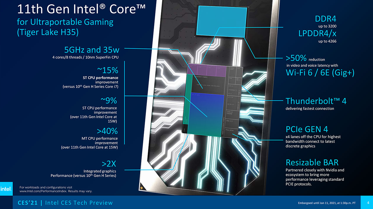 Intel은 얇은 노트북 PC 용 11 세대 Core 프로세서의 새로운 변형으로, 게이머를 위한 노트북 PC를 타깃으로 한 개발 코드 네임 「Tiger Lake H35 '를 출시한다고 발표했다.