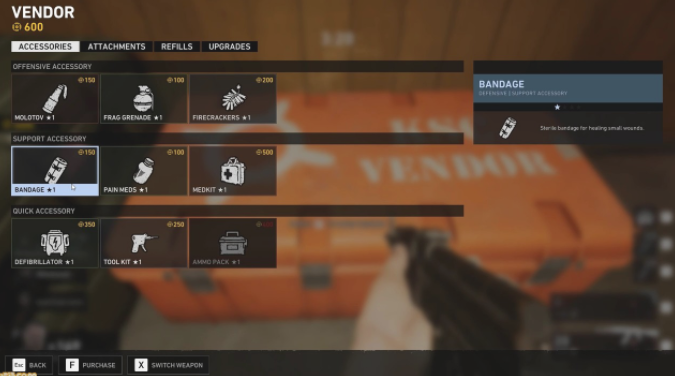 기타 안전시설에는 업체 (상점) 시스템이 있어, 도중에 얻은 포인트 "구리"로 각종 액세서리 (회복 아이템이나 수류탄 계, 탄약 상자 등)이나 부착, 탄약, 총기 성능의 업그레이드 등을 구입할 수 있다.