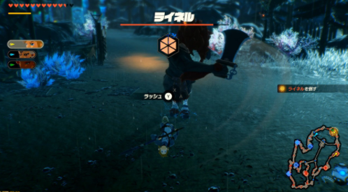적의 공격이 자신에게 닿기 직전에 회피에 성공하면 회피 저스트가 되고, Y버튼으로 러시를 매기게 된다.러시는 위크포인트 게이지를 단번에 깎아내는 공격이기 때문에 매우 강력하다. 그 어쩌면 노리는 난도는 높일지도.